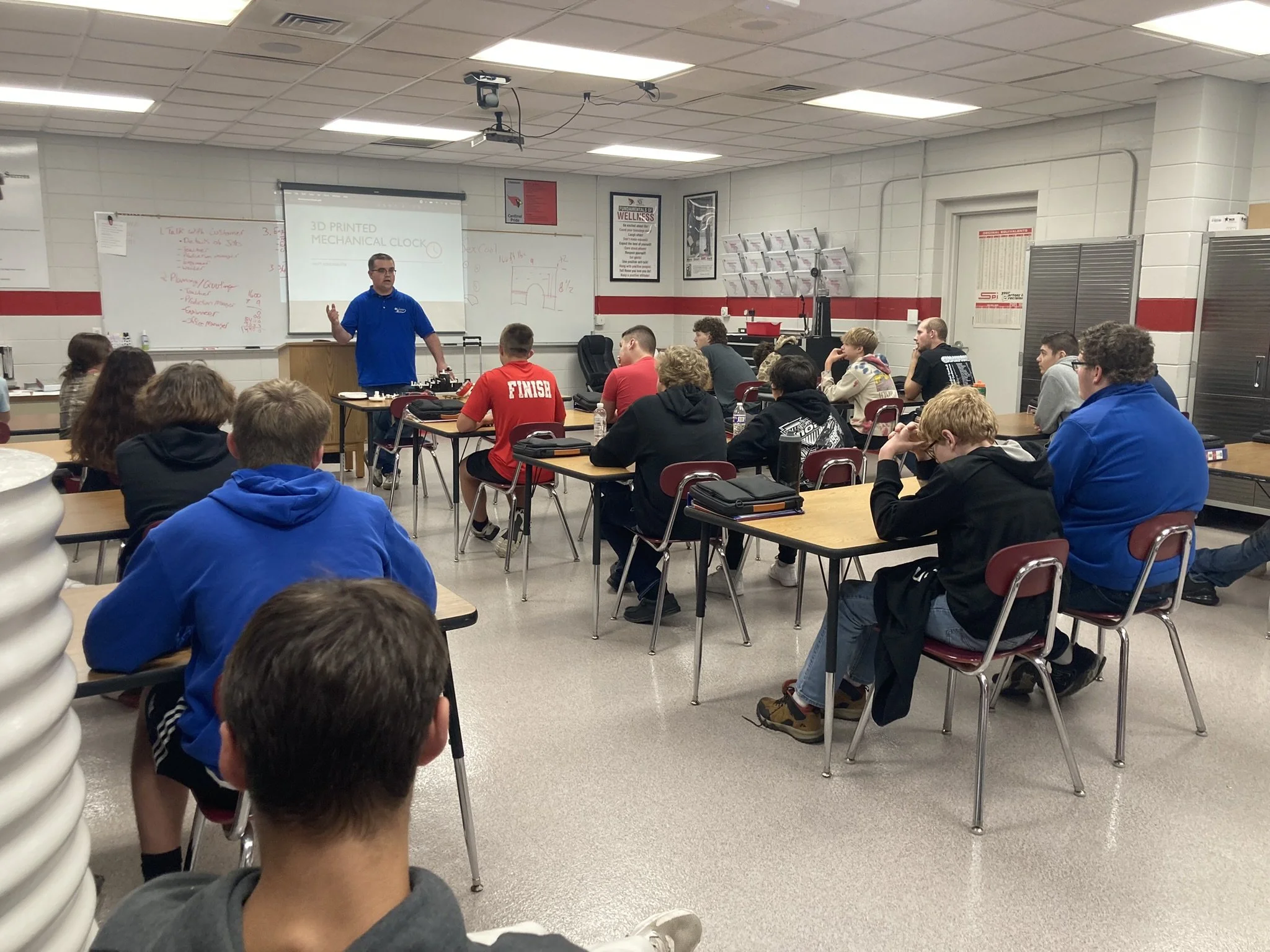 To inspire the students even more, I displayed my 3D printed mechanical clock that I made. I have invested over 2,000 hours in the project and it shows. The clock was made to show students how a mechanical watch works, as the gears are laid out in-line to show each gears function.